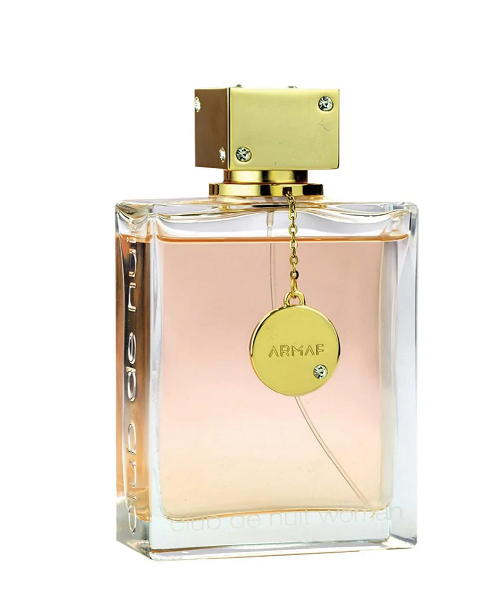 ARMAF Club De Nuit Woman is a rich and sophisticated fragrance that unfolds in captivating layers. It opens with a vibrant burst of zesty Bergamot and Grapefruit, softened by the sweet, juicy essence of Peach and a refreshing hint of Orange.